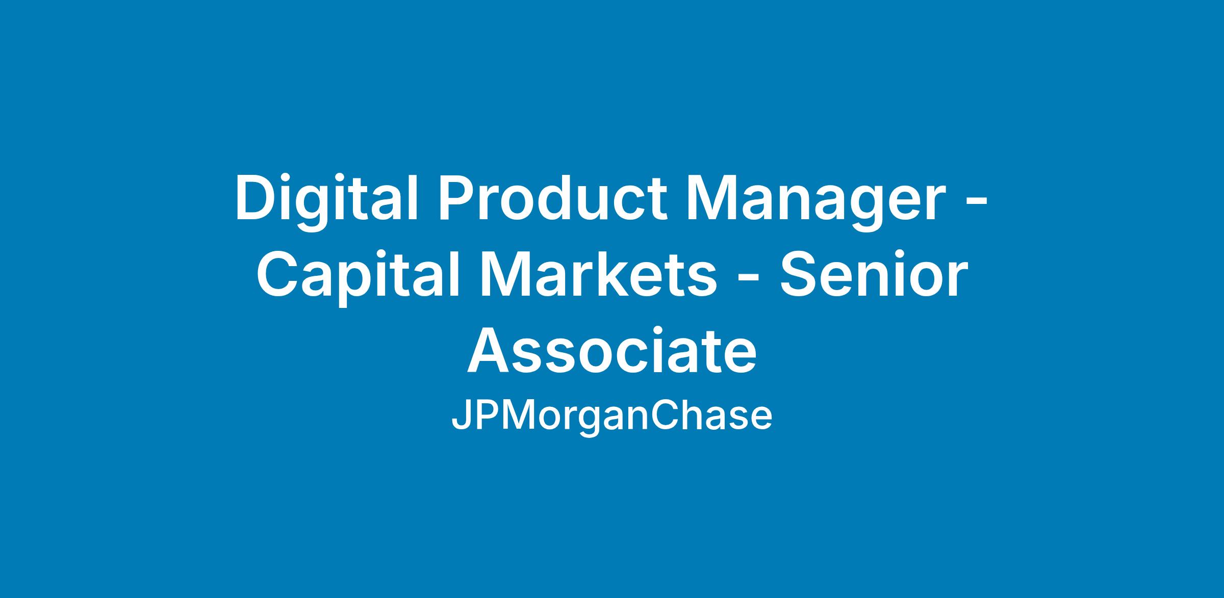 DescriptionAs a Senior Product Associate on the Global Investment Banking Digital team, you will build and optimize digital products that Capital Markets bankers rely on to serve clients and execute deals. Working at the intersection of finance, technology, and data, you will partner with engineering, design, data science, and business teams to deliver tools that streamline complex workflows and drive measurable business impact.