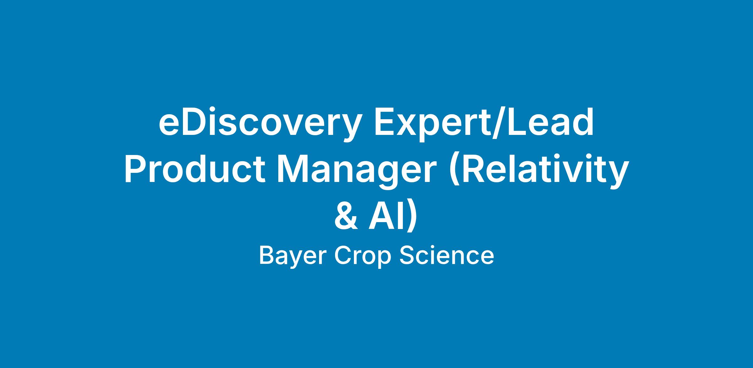 eDiscovery Expert/Lead Product Manager (Relativity & AI)
