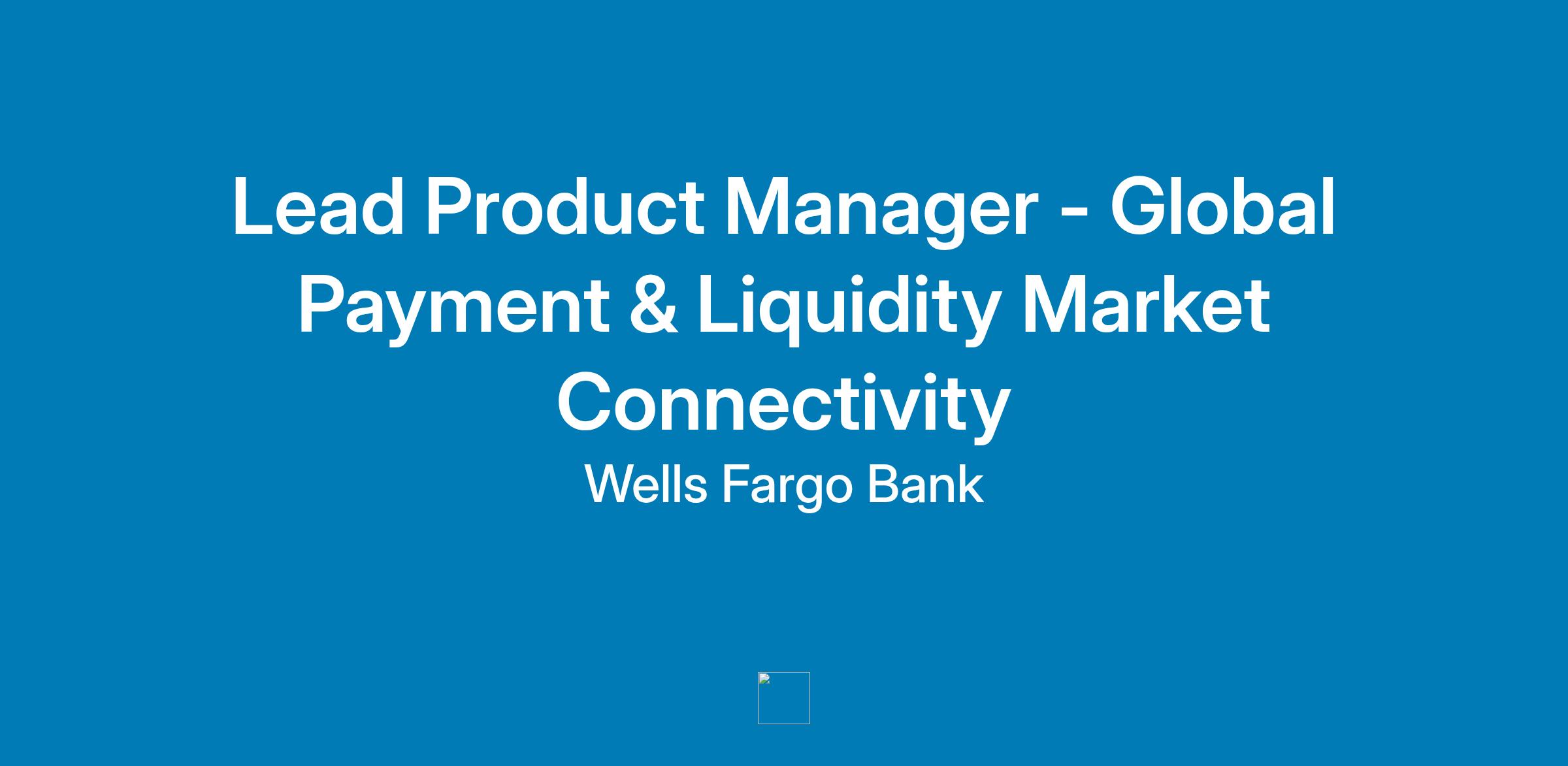 Wells Fargo is seeking a Lead Product Manager to support the Market Connectivity team, driving strategic execution and product enablement across the Global Payments & Liquidity (GPL), Product & Platform organization. This team is focused on expanding core payments products, enhancing pricing discipline for deposits and fees, and modernizing payments platforms and architecture to build robust payment ecosystems.