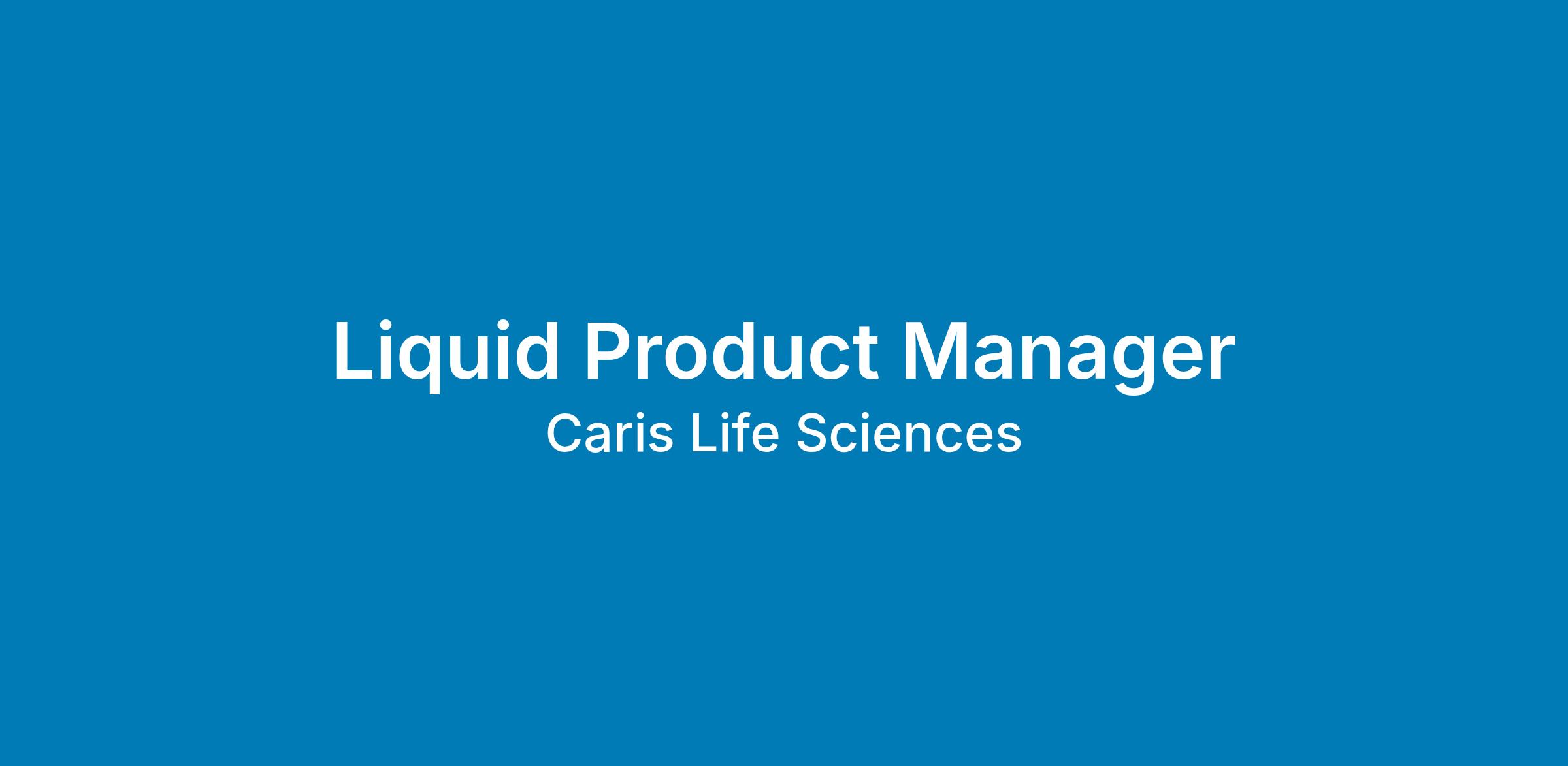 The Liquid Product Manager will focus on clinical liquid offerings within Caris Life Sciences, including current and future products. Proficiency in the Liquid Oncology Market, compliance and regulations, and ability to effectively communicate and sell Caris Liquid Product offerings is essential.
