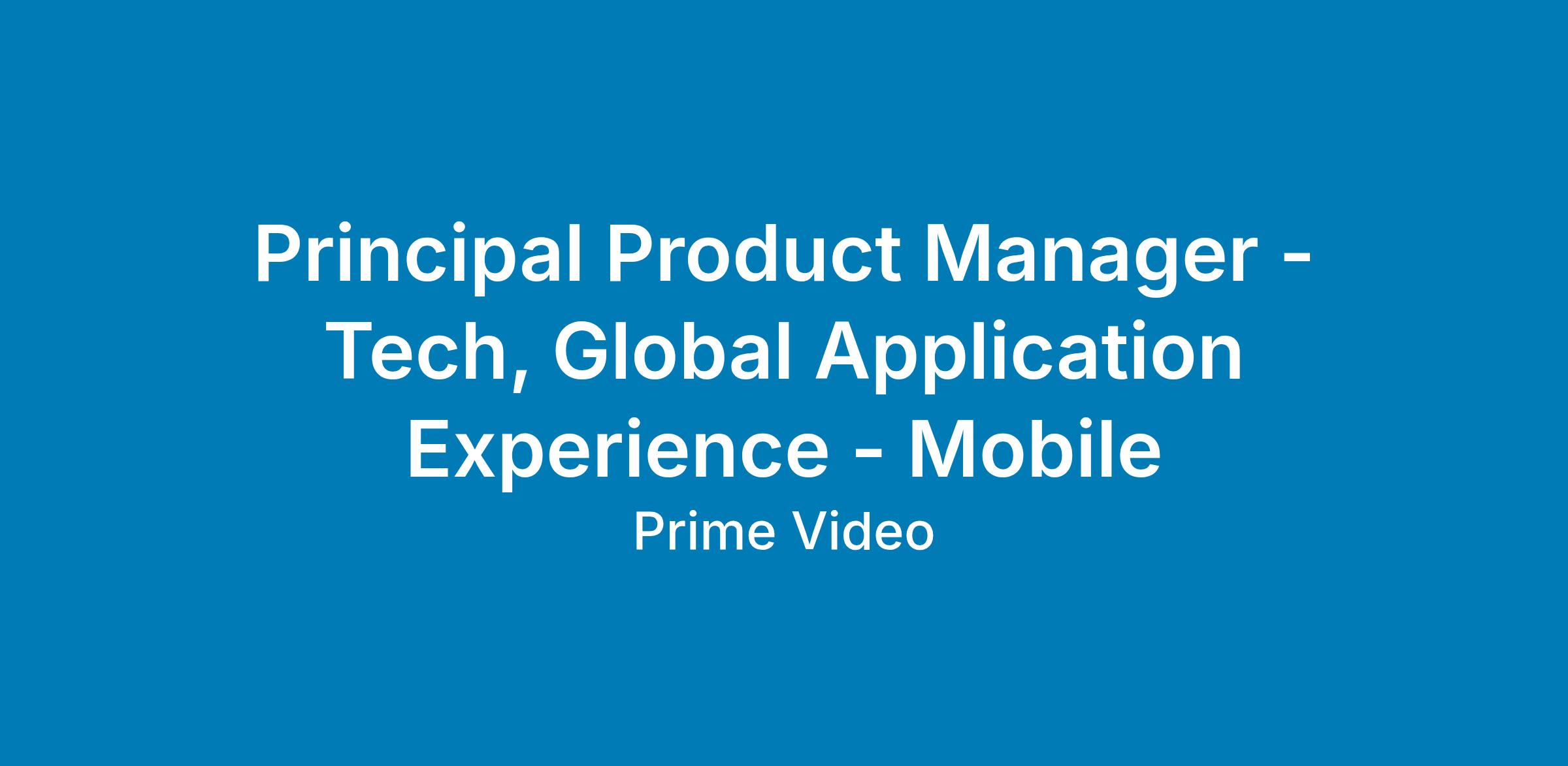 Principal Product Manager - Tech, Global Application Experience - Mobile