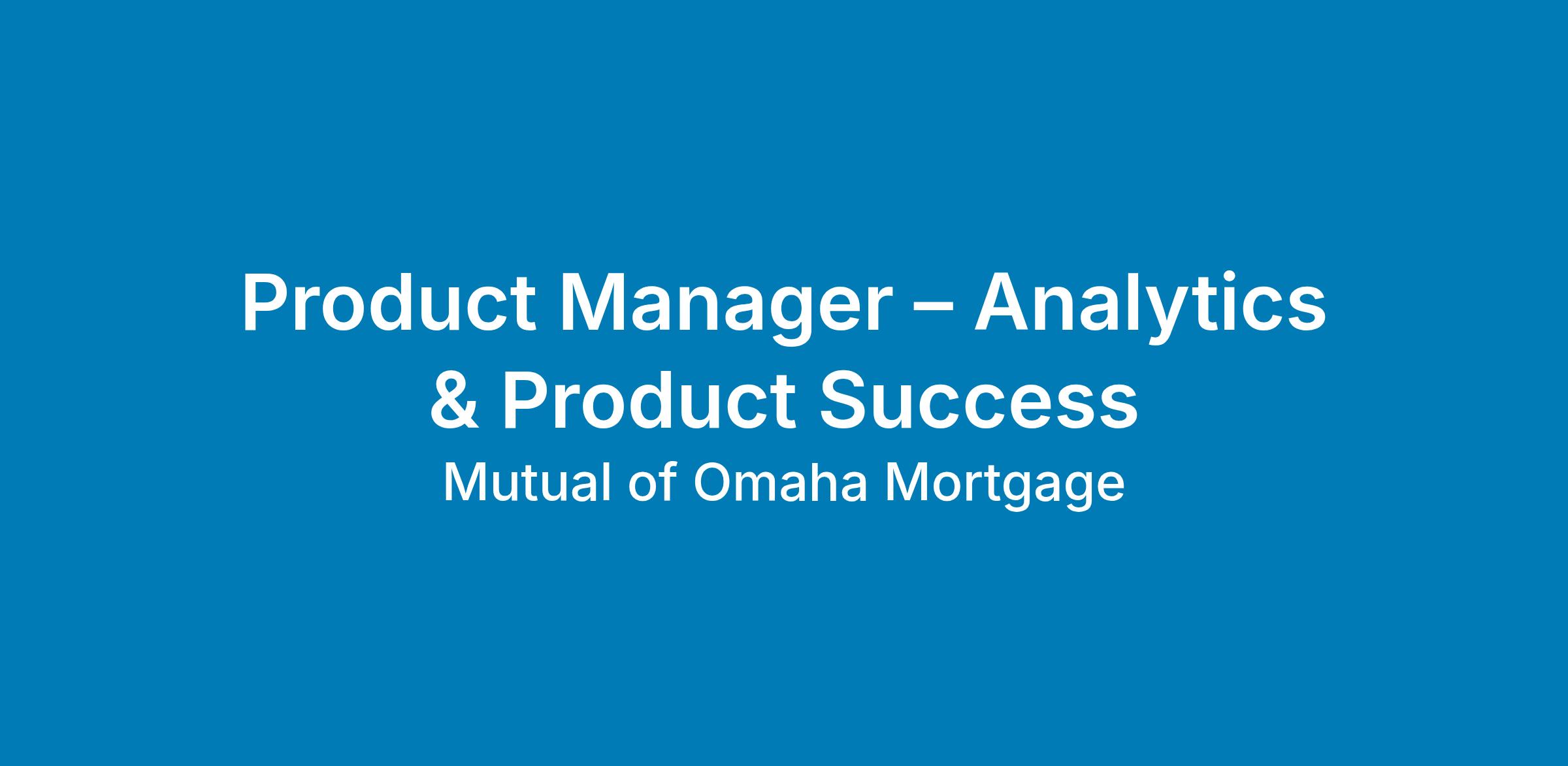 Mutual of Omaha Mortgage seeks a data-driven Product Manager to join our team. As the Product Manager – Analytics & Product Success, you will serve as the guardian of product health and success metrics, using sophisticated monitoring tools and deep data analysis to verify features work as expected, launches succeed, and products deliver measurable value to customers and the business.