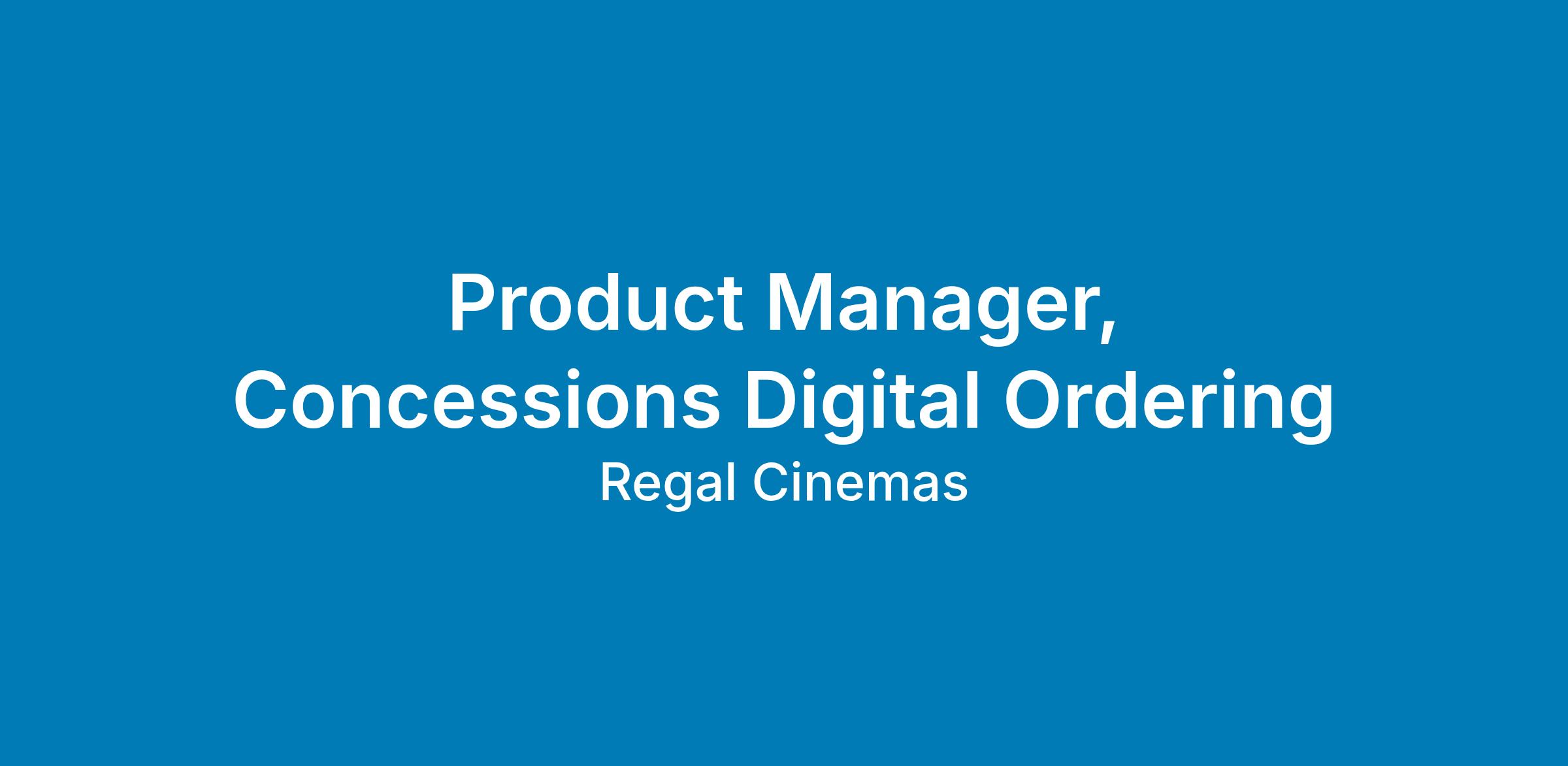 Regal Cinemas is seeking a Product Manager to lead the Concessions Digital Ordering experience across web, iOS, Android, Kiosk, and POS. This role owns both the standalone food and beverage ordering journey and the flow integrated into movie ticket purchase. You’ll improve how guests browse, order, and pick up concessions—making the process faster, easier, and more delightful from digital selection to in‑theater pickup.