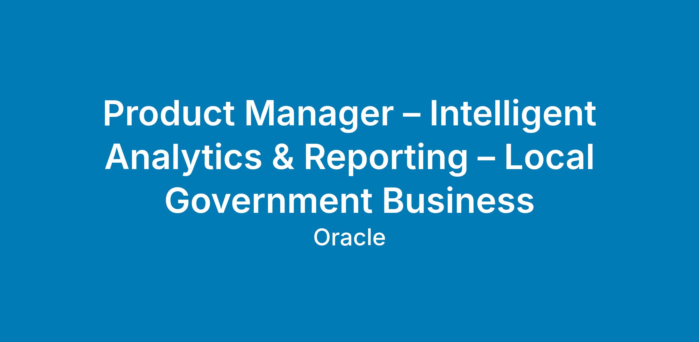 The Oracle Local Government Product Management team is hiring a high-visibility Product Manager of Intelligent Analytics & Reporting to lead the strategy, development, launch, go-to-market, and scale-up of a portfolio of products focused on intelligent analytics, reporting, and data for small government customers.