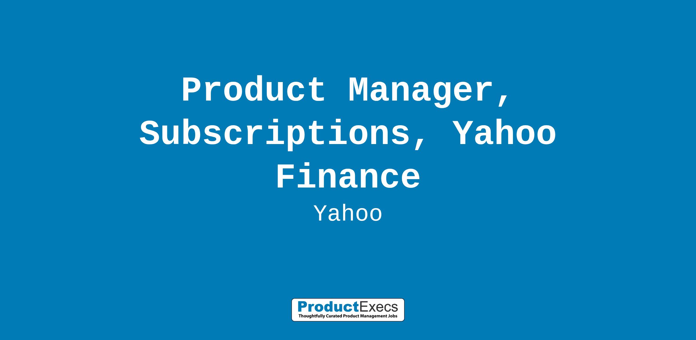 The Product Manager for Yahoo Finance Subscriptions will be responsible for Yahoo Finance Gold, Silver and Bronze; these offer an industry-leading bundle of benefits across our features and platforms. They will build a compelling end-to-end experience for subscribers, and partner with feature teams to drive growth by promoting subscriptions, improving conversion, reducing churn and constantly increasing the value we deliver. The ideal candidate has excellent product growth skills and user empathy. They are passionate about building seamless, engaging paid products that deliver for users and the business, and love to win with integrity.