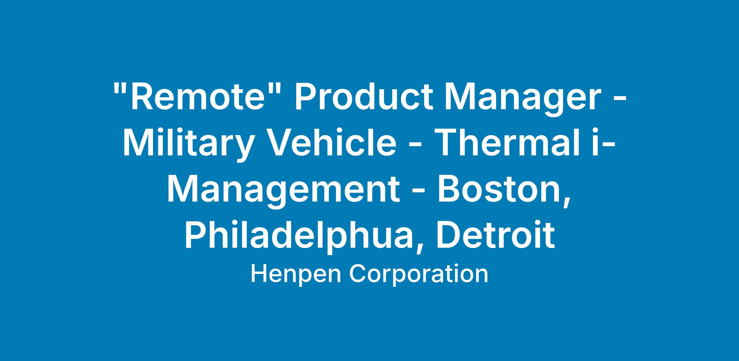 Our client is a UK-based engineering organization expanding its U.S. presence in the Engine Cooling Systems and Thermal Management segment for Military Land Vehicles. They are seeking a senior-level Product Manager to serve as the technical and customer-facing lead in the United States.