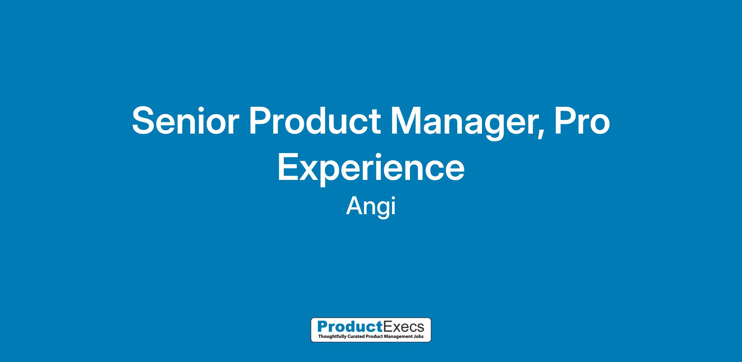 Angi is seeking an experienced, results-driven Senior Product Manager to join our Pro team. This person will work across the web and mobile app experiences our pros use on a daily basis to get Jobs Done Well in Angi’s $1B marketplace.