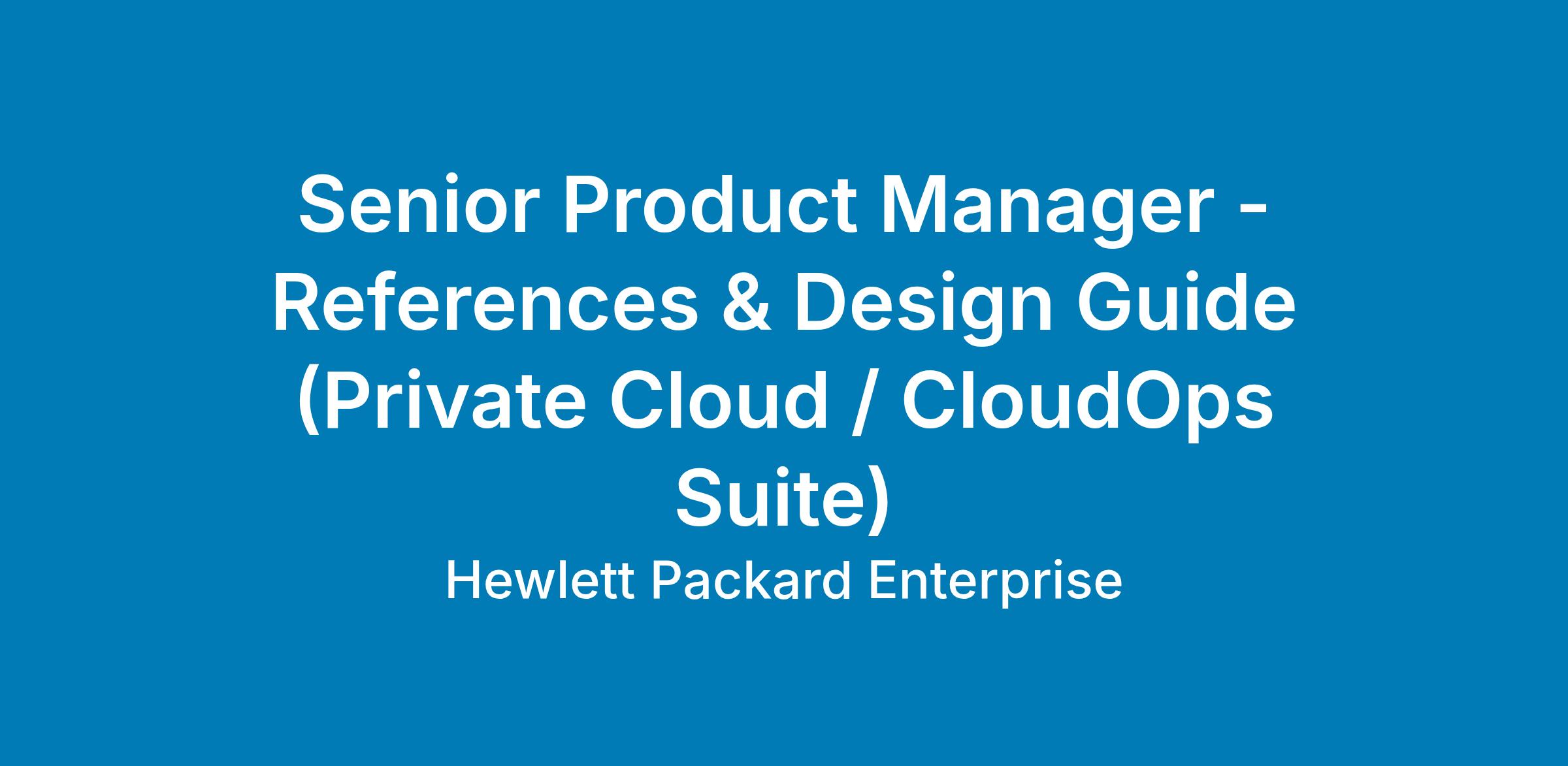 The Senior Product Manager is responsible for defining and delivering reference architectures and design guides that enable customers and Managed Service Providers (MSPs) to successfully build and operate Private Cloud environments using the HPE CloudOps Suite.