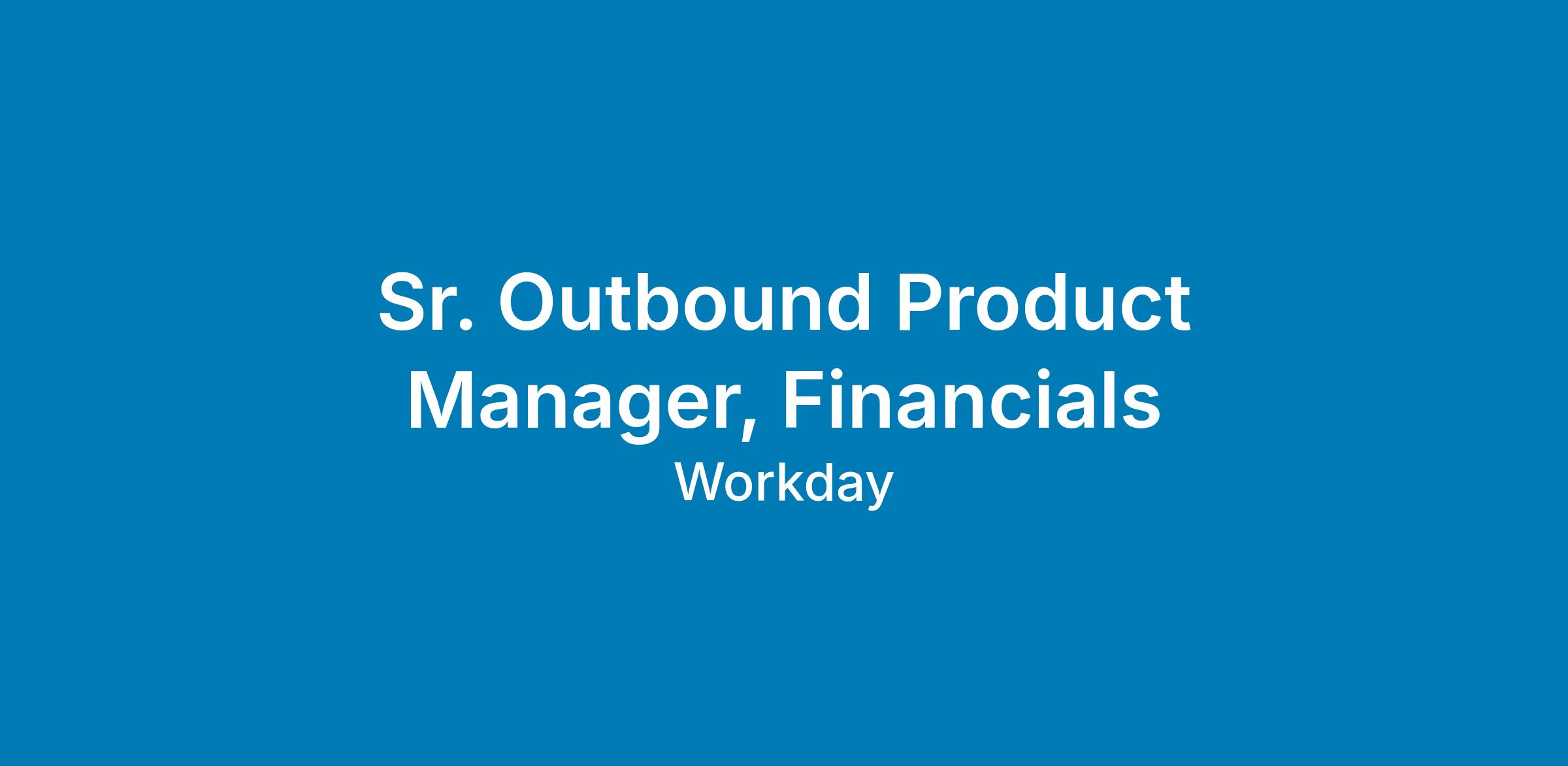 The Workday Financials Outbound Product Management team partners with Sales, Strategy, Services, and Inbound Product Managers to identify the most important problems to be solved. We engage with customers, prospects, and our go-to-market (GTM) teams to drive the value, awareness, and adoption of our products.About the Role