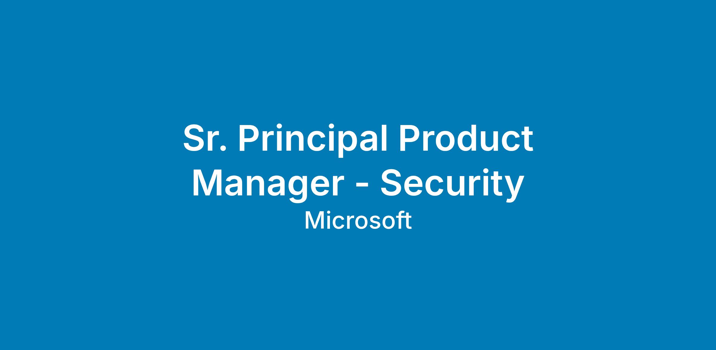 OverviewSecurity represents the most critical priorities for our customers in a world awash in digital threats, regulatory scrutiny, and estate complexity. Microsoft Security aspires to make the world a safer place for all. We want to reshape security and empower every user, customer, and developer with a security cloud that protects them with end to end, simplified solutions. The Microsoft Security organization accelerates Microsoft’s mission and bold ambitions to ensure that our company and industry is securing digital technology platforms, devices, and clouds in our customers’ heterogeneous environments, as well as ensuring the security of our own internal estate. Our culture is centered on embracing a growth mindset, a theme of inspiring excellence, and encouraging teams and leaders to bring their best each day. In doing so, we create life-changing innovations that impact billions of lives around the world.We are looking for a Senior Principal Product Manager to help us in our goal to build intelligent security systems that meaningfully reduce defender toil, improve precision and speed, and unlock entirely new security workflows that were previously impossible. Microsoft’s mission is to empower every person and every organization on the planet to achieve more. As employees we come together with a growth mindset, innovate to empower others, and collaborate to realize our shared goals. Each day we build on our values of respect, integrity, and accountability to create a culture of inclusion where everyone can thrive at work and beyond.In alignment with our Microsoft values, we are committed to cultivating an inclusive work environment for all employees to positively impact our culture every day.