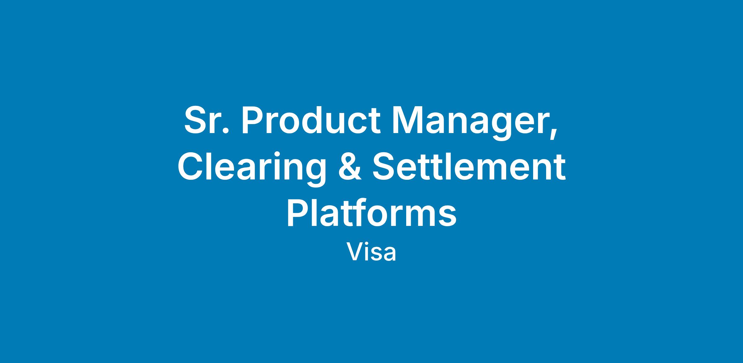 Sr. Product Manager, Clearing & Settlement Platforms