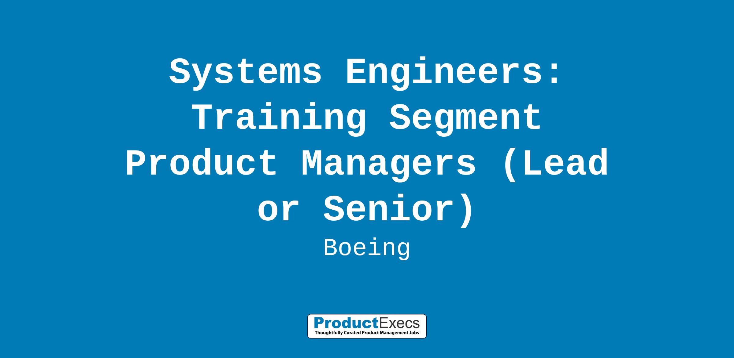 The Boeing CompanyBoeing Global Services (BGS) is currently hiring for a broad range of experience levels including Lead and or Senior Level Systems Engineers: Training Segment Product Managers for a proprietary program located in Hazelwood, Missouri.